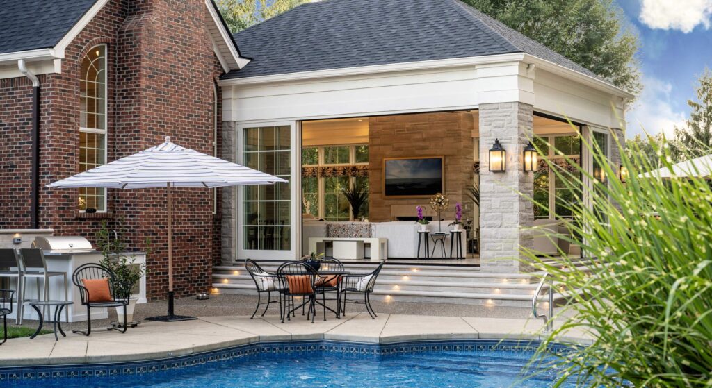 Sunroom Addition — Floyds Knobs, Indiana This bright and inviting sunroom addition seamlessly connects the home’s interior to the outdoor pool area, creating the perfect transition between indoor comfort and outdoor living. Expansive 8-foot sliding glass doors open the space entirely on two sides, offering an open pavilion feel when the weather allows. The design […]
